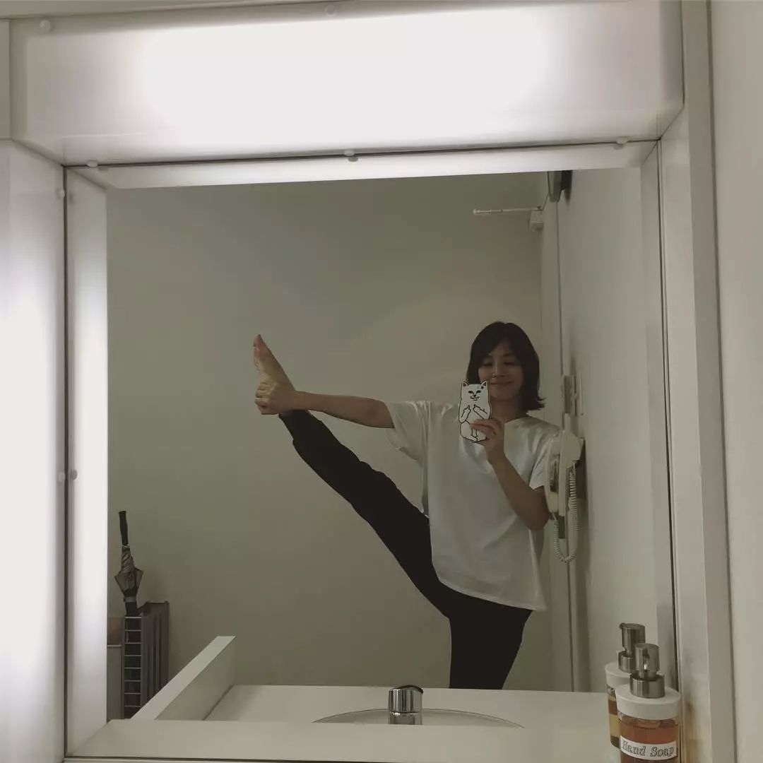 身体柔韧得像少女,轻轻松松就能劈个叉。