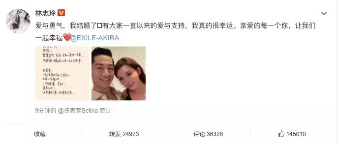 文 | 陈阿咪&李可以啊&遥七 · 主播 | 林静 十点读书原创 就在刚刚,林志玲在微博公布了她结婚的喜讯。 “爱与勇气,我结婚了。有大家一直以来的爱和支持,我真的很幸运。亲爱的每一个你,让我们一起幸福。” 据悉,对方是比林志玲小7岁的外国男子组合EXILE成员AKIRA,双方是在8年前一起演舞台剧时认识的。去年底,二人正式交往。 合照里,她一脸甜蜜。 从一直被网友催婚,到后来直接宣布婚讯。林志玲的爱情,其实也让我们看到了婚姻里的三个真相: 真相一:婚姻是找最适合自己的那个人 虽然很不想承认,但是看到林志玲结婚的消息时,我脑海里第一个想到的人还是言承旭。 听过这样一个故事: 王子和公主是天造地设的一对,但是他们都身负重任。 有一天公主病了,而当王子知道的时候,正在打仗。 他很想立刻去见公主,但周围的人都劝他不要去。 后来王子还是穿过重重阻碍跑了出去。 但是见到公主的那一瞬间,他沉默了。 也许是因为太着急,他连对不起都说得支离破碎。 也许是因为太内疚,他连怎么抱她是最好的姿势都弄不明白。 他悬空着手,一下子抓不住,终于跪下来开始大哭。 这时候,公主也哭了。 因为她从来不知道,为什么两个相爱的人,在受苦的时候想要接近,会那么疼。 他们抱在一起哭了很久很久,他们并不知道那是他们最后一次抱在一起哭泣。 以上这段文字,来自于言承旭的书《9314男人与男孩》,这是书的结尾,也是故事的结局。