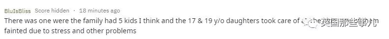 可他们对此不以为然,妈妈18岁的时候,又生下了第二个孩子。 随后的几十年里,妈妈不停地生生生,算上这位吐槽的小姐姐在内,前前后后一共生了10个。 小姐姐今年31岁,最大的弟弟28岁,其余的兄弟姐妹年龄在10岁到27岁不等。 因为生得实在太多了,尽管妈妈全职在家照顾孩子,也常常忙不过来。所以,逐渐长大的小姐姐就成为妈妈眼里最好的“帮手”。 给弟弟妹妹洗脸洗手、擦屁股、换尿不湿,给他们冲奶粉喂饭,陪他们玩耍,教他们读书写字,哄他们刷牙睡觉…… 明明还是个小女孩的她,过早地承担起原本是父母的责任。