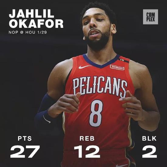 鹈鹕在下半场用火箭给的机会惩罚了火箭,奥卡福打出了恩比德的数据,全场砍下27分12篮板2封盖制裁我们的内线。